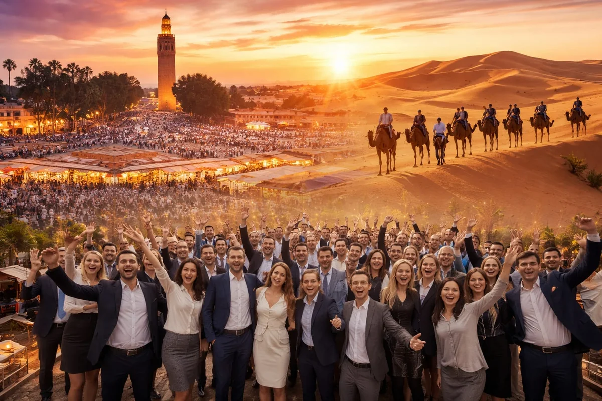 Marruecos es un destino ideal para eventos corporativos gracias a su combinación de infraestructura moderna, hoteles de lujo, paisajes espectaculares y experiencias culturales únicas. Las empresas pueden combinar reuniones profesionales con actividades de team building, excursiones y experiencias en el desierto del Sahara.