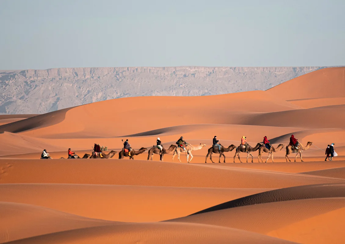 Sí, el paseo en dromedario está incluido al atardecer para llegar al campamento y al amanecer para regresar después de la noche en el desierto de Erg Chebbi.